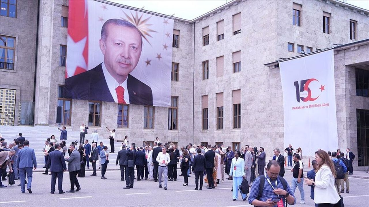 Ardından TBMM'de düzenlenen anma törenine katılan gazeteciler, burada Cumhurbaşkanı Recep Tayyip Erdoğan'ın hitabını izledi ve sonrasında Gazi Meclis'in 15 Temmuz darbe girişiminde hasar alan bölümlerinde incelemelerde bulundu.