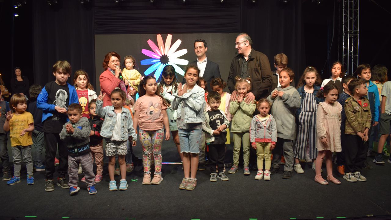 Gösteri bitiminde Cumhuriyet Halk Partisi Hatay Milletvekili Suzan Şahin, çocuklarla birlikte sahneye çıkarak Sunay Akın’a çiçek hediye etti.