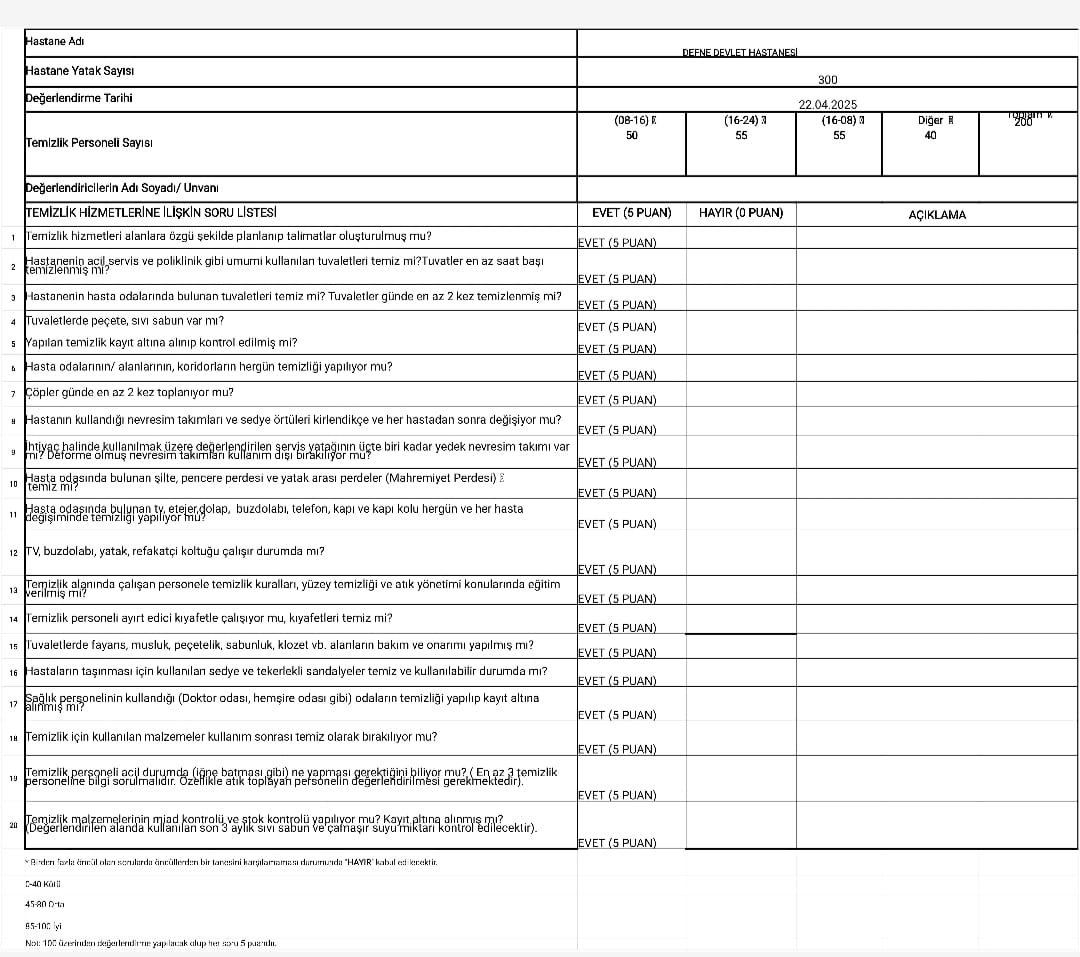“Hijyen ve temizlik, sağlık hizmetlerinin temel taşlarındandır. Bu alanda aldığımız 100 puanlık başarı, ekibimizin özverili ve disiplinli çalışmasının ürünüdür. Müdür Yardımcımız Sercan Açıkyol’un koordinasyonunda çalışan tüm personelimizi yürekten kutluyorum.”