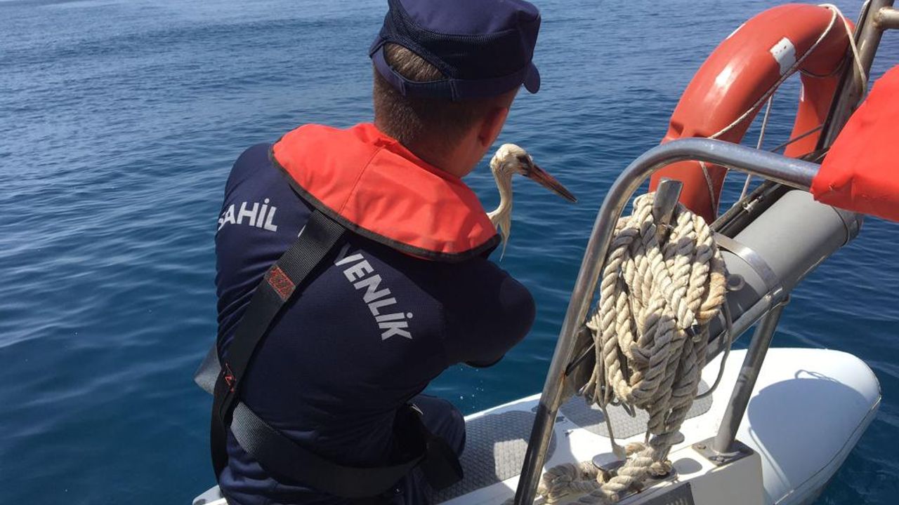 Doğu Akdeniz Sahil Güvenlik Grup Komutanlığı ekipleri, Kale Mahallesi açıklarında devriye görevi sırasında deniz yüzeyinde hareketsiz duran leyleği fark etti. Kanat ve ayağından yaralı olduğu belirlenen leylek, denizden alınarak Hatay Doğa Koruma ve Milli Parklar Müdürlüğü görevlilerine teslim edildi.