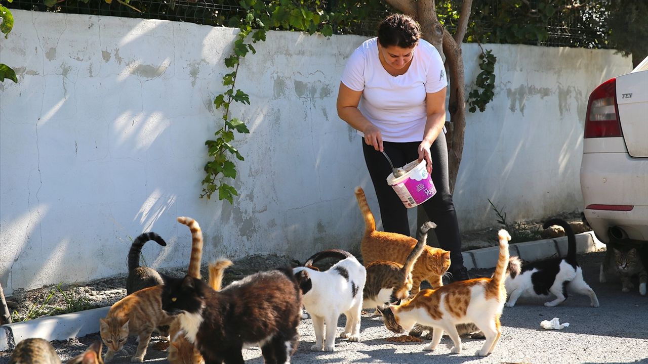 HATAY (AA) - ALİ KÜÇÜK - Depremlerden etkilenen Hatay'da iki çocuk annesi Canan Göçmen, çok sayıda sahipsiz kedinin bakımını üstleniyor.
