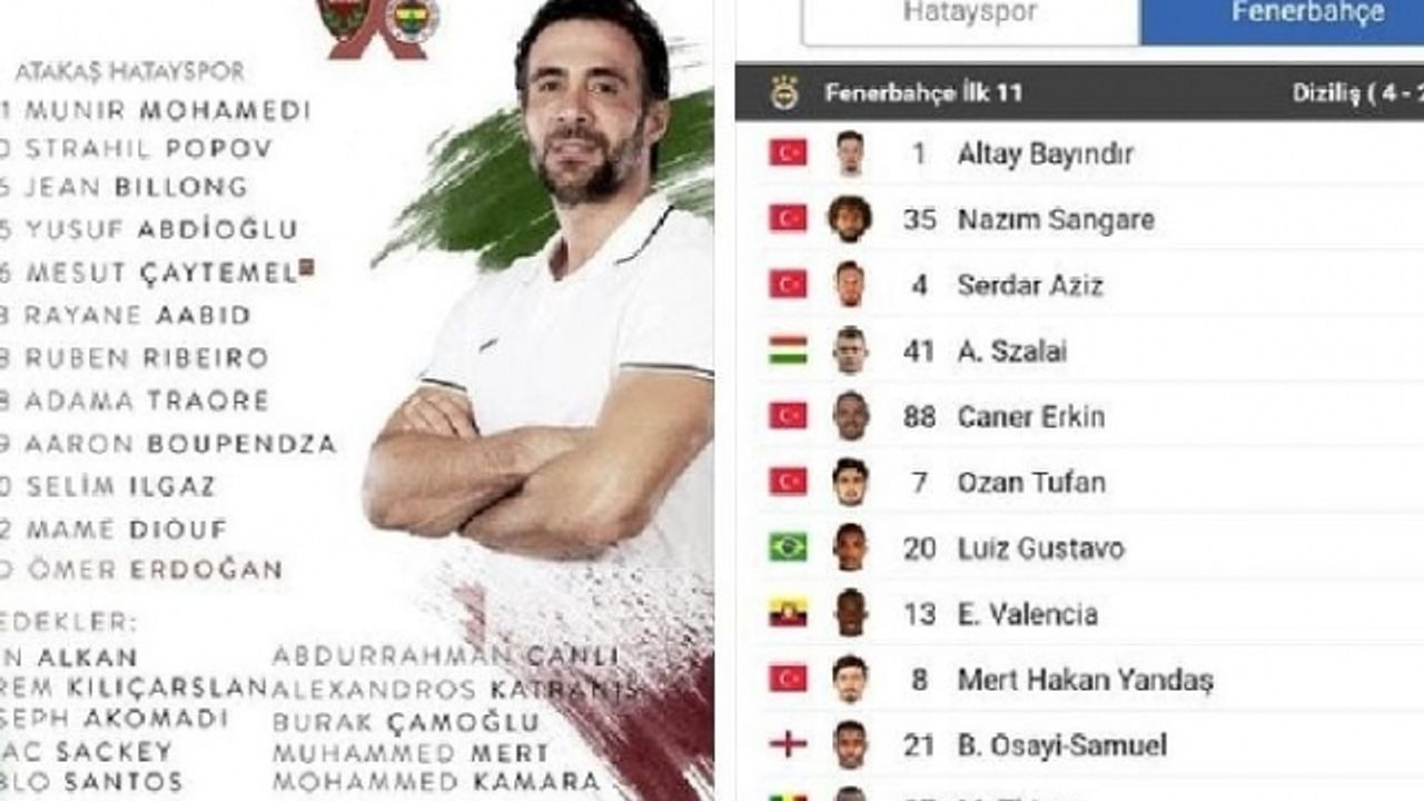 Süper Ligin ikinci yarısında Hatayspor’a Fenerbahçe konuk oluyor. Saat 16.00'da başlayacak olan mücadelenin ilk 11'leri belli oldu.