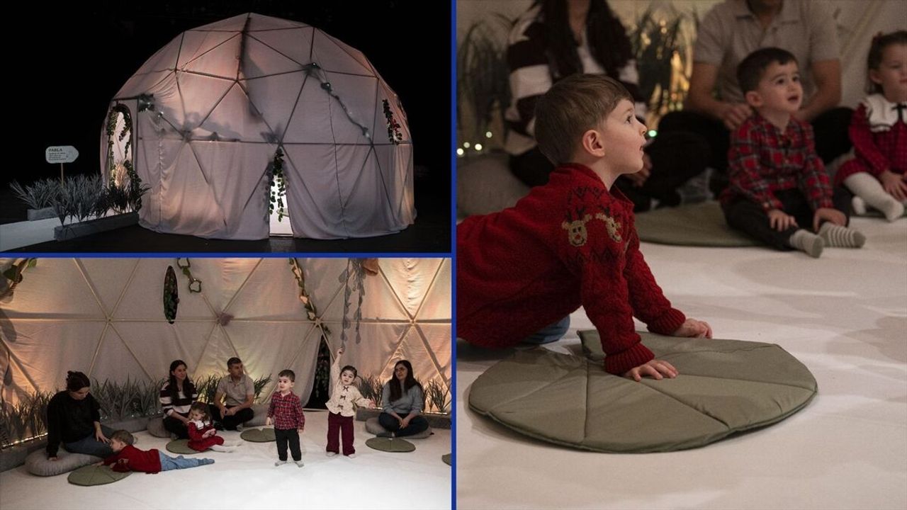 Ankara Devlet Tiyatrosunca Akün Sahnesi'nde gösterilecek oyun için anneler ve bebekleri ayakkabılarını çıkarıp çantalarını kilitli dolaplara koyduktan sonra sahnedeki büyük çadıra giriş yapıyor.