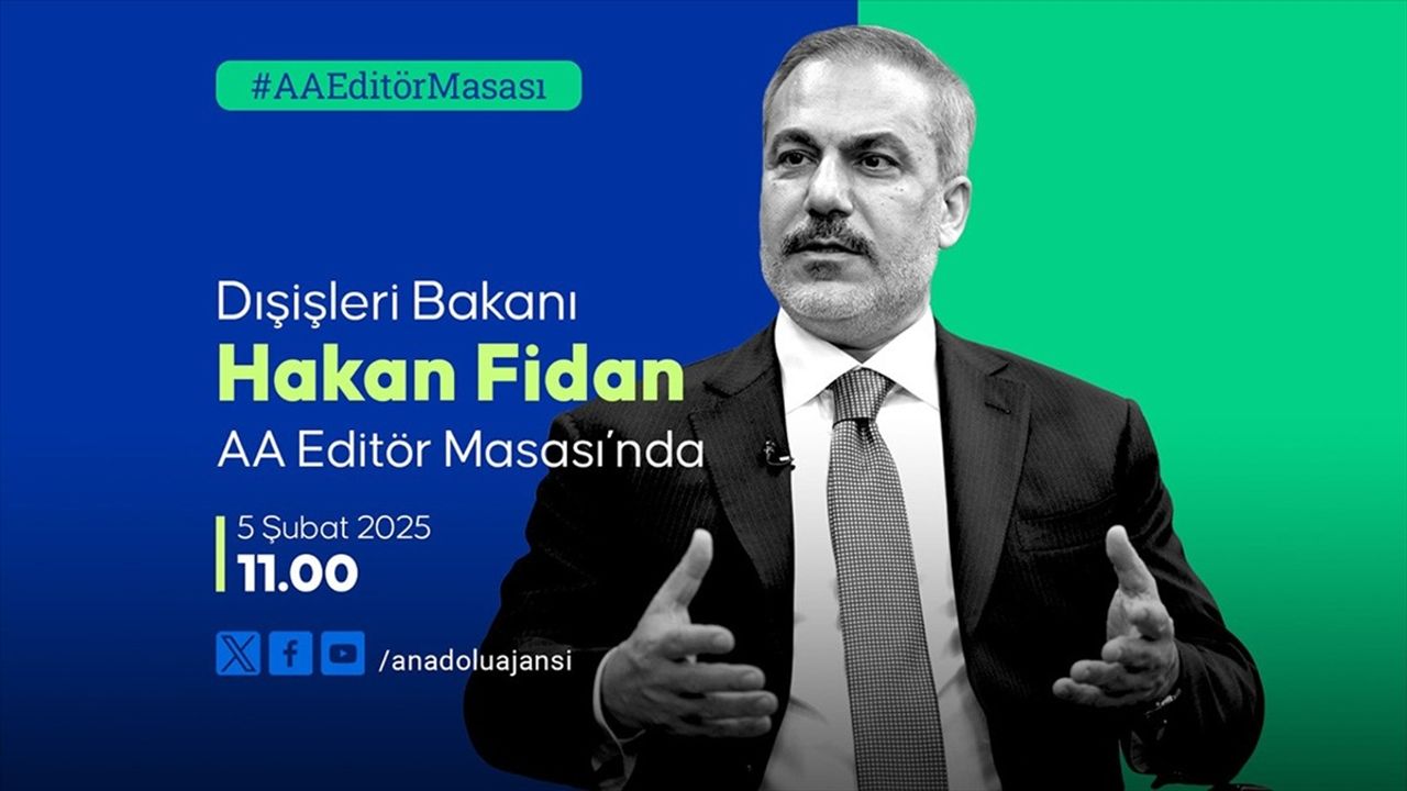 ANKARA (AA) - Fidan, Editör Masası'nda, Suriye Geçiş Dönemi Cumhurbaşkanı Ahmed Şara'nın Türkiye ziyaretinin sonuçları, terör örgütü PKK/YPG'yle ilgili son gelişmeler, Türkiye ile yeni ABD yönetimi arasındaki ilişkiler, Gazze'deki ateşkesin seyri, Türkiye-Avrupa Birliği (AB) ilişkileri ve Rusya-Ukrayna savaşındaki son durum gibi birçok konuda sorulara yanıt verecek.