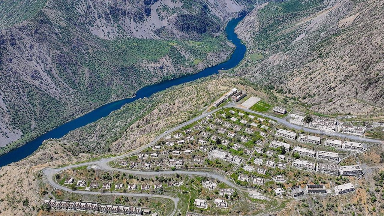 Yöre halkının "İtalyan köyü" olarak adlandırdığı, Fırat Nehri ile birleşen görüntüsüyle ilgi gören yerleşke, Anadolu Ajansı ekibince dronla görüntülendi.