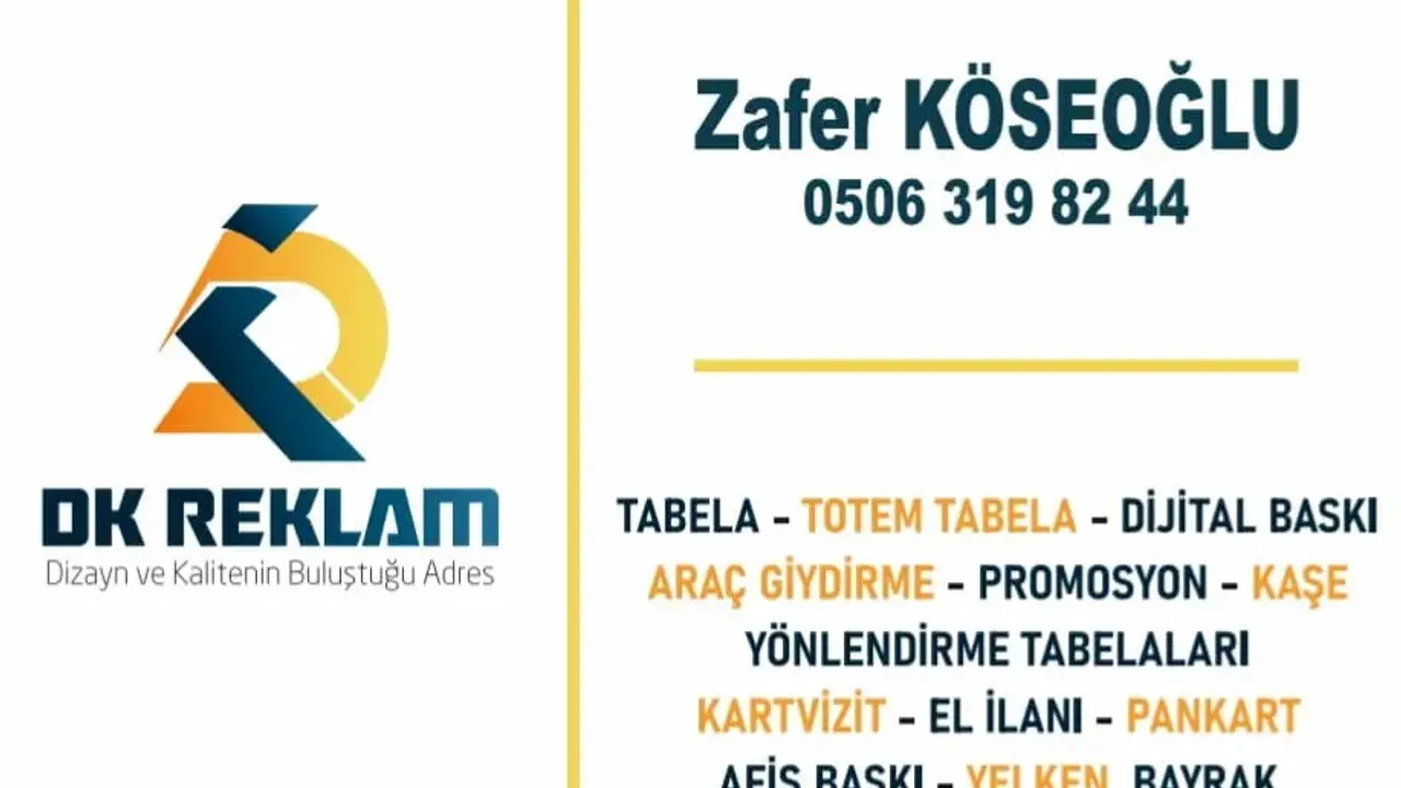 Dizayn ve kalitenin buluştuğu adres olarak faaliyet gösteren DK Reklam, tabela ve dijital baskı alanındaki geniş hizmet yelpazesiyle dikkat çekiyor. Firma, hem kurumsal hem de bireysel müşterilere yönelik çözümleriyle reklam sektöründe fark yaratmayı hedefliyor.