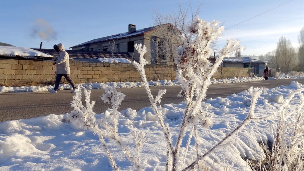 Gece hava sıcaklığının sıfırın altında 12 derece ölçüldüğü Ardahan'da da dere ve göletler buz tuttu, ağaçlar kırağıyla kaplandı.