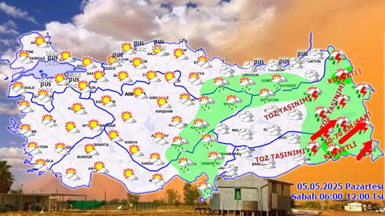 Hava sıcaklığında önemli bir değişikliğin olmayacağı yurdun batı kesimlerinde mevsim normallerinin üzerinde, diğer yerlerde mevsim normalleri civarında seyretmesi bekleniyor. Doğu Anadolu ile Güneydoğu Anadolu illeri için toz taşınımı uyarısı geldi.