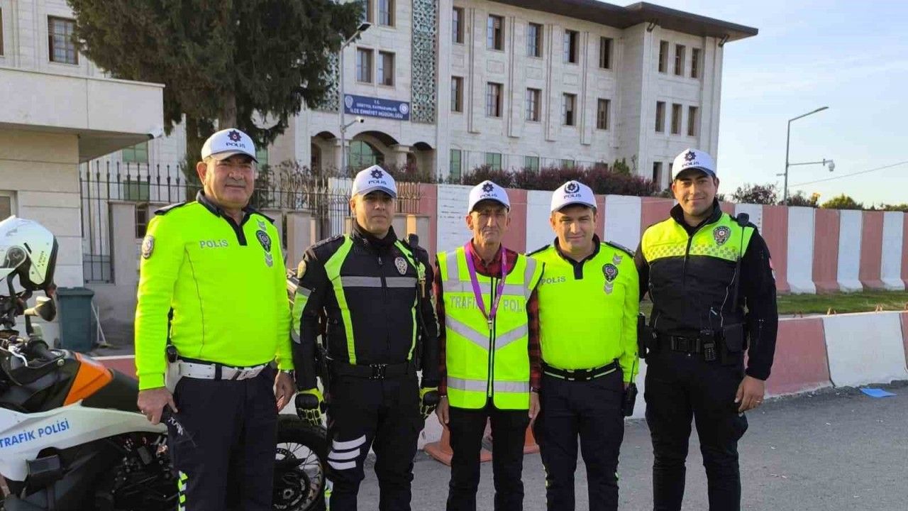 Hatay’da engelli birey Ömür Irmalı, polis yeleği giyerek ekiplerle birlikte trafik denetimine katıldı.