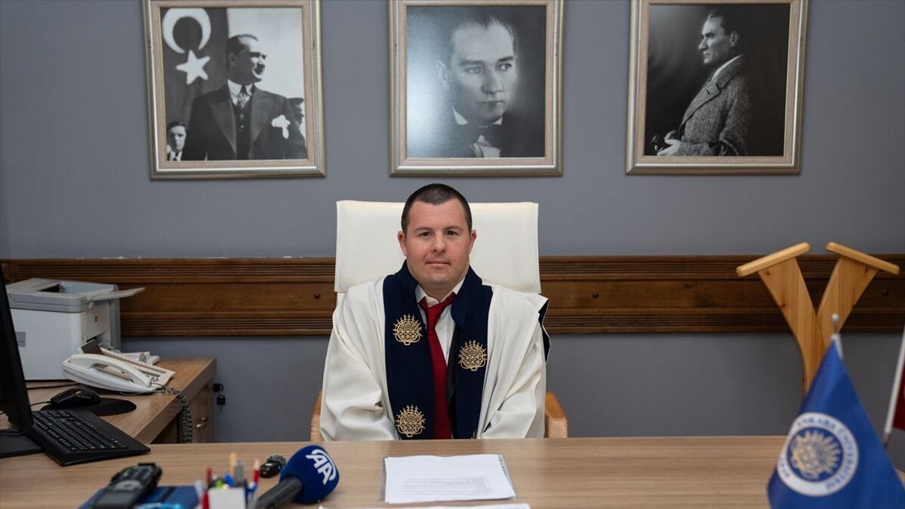 Daha sonra Ünüvar, rektörlük binişini giydirdiği Sınav'ı makam koltuğuna oturtturdu.