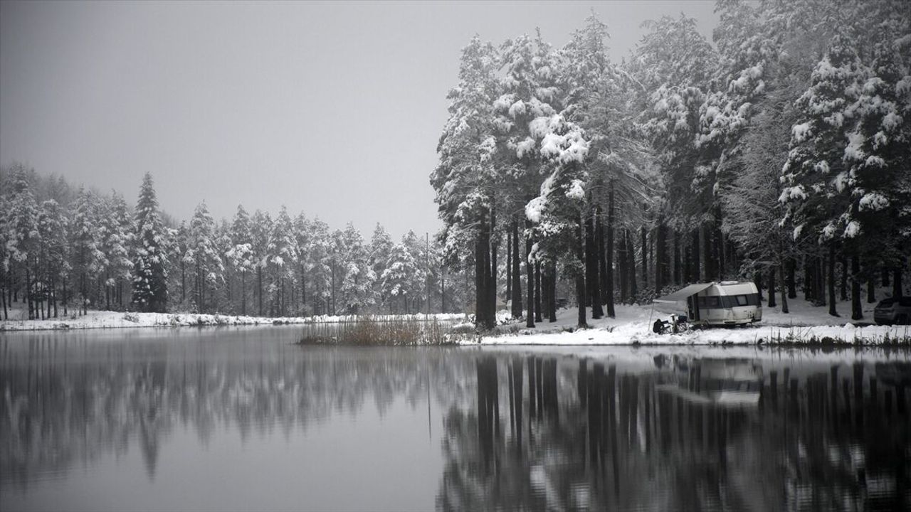 Doğaseverlerin tercih ettiği yerler arasında bulunan yaylada ve içinde barındırdığı göletin çevresinde kar yağışının ardından kış manzarası oluştu.