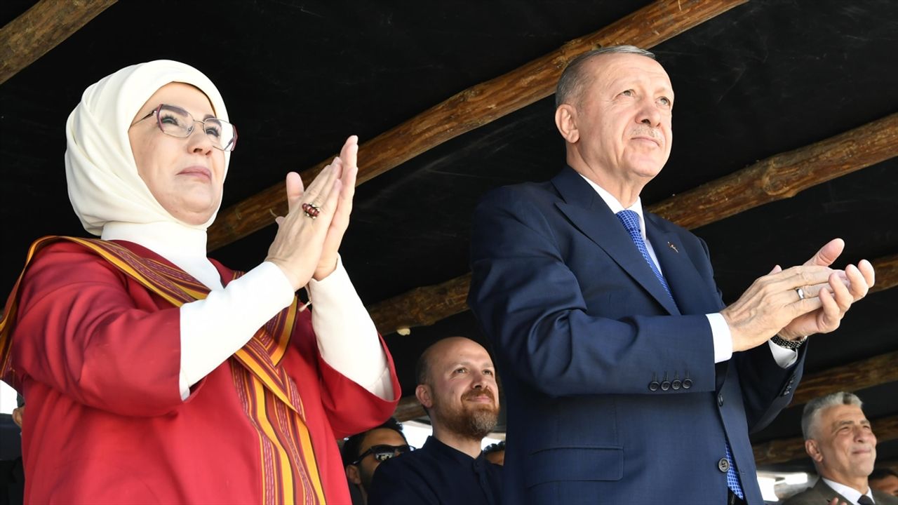 Festival alanında Cumhurbaşkanı Erdoğan ile birlikte yöresel oyunları da izleyen Emine Erdoğan, Sıfır Atık Vakfının "Dünya Ortak Evimiz" çadırını gezdi.