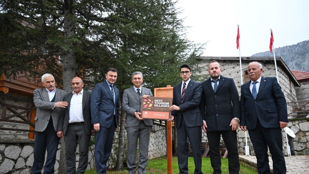 Antalya Valisi Hulusi Şahin, İbradı ziyareti kapsamında Ormana Mahallesi’ne "En İyi Turizm Köyü" unvanı tabelasını yerleştirdi.