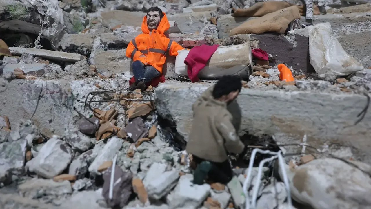 Kocaman’ın yaptığı minyatür yalnızca bir figürden ibaret değil. Enkaz altında kalan aileler, onları kurtarmaya çalışan yakınlar, yıkılmış binalar… Hepsi o küçük alanda yeniden hayat buluyor.