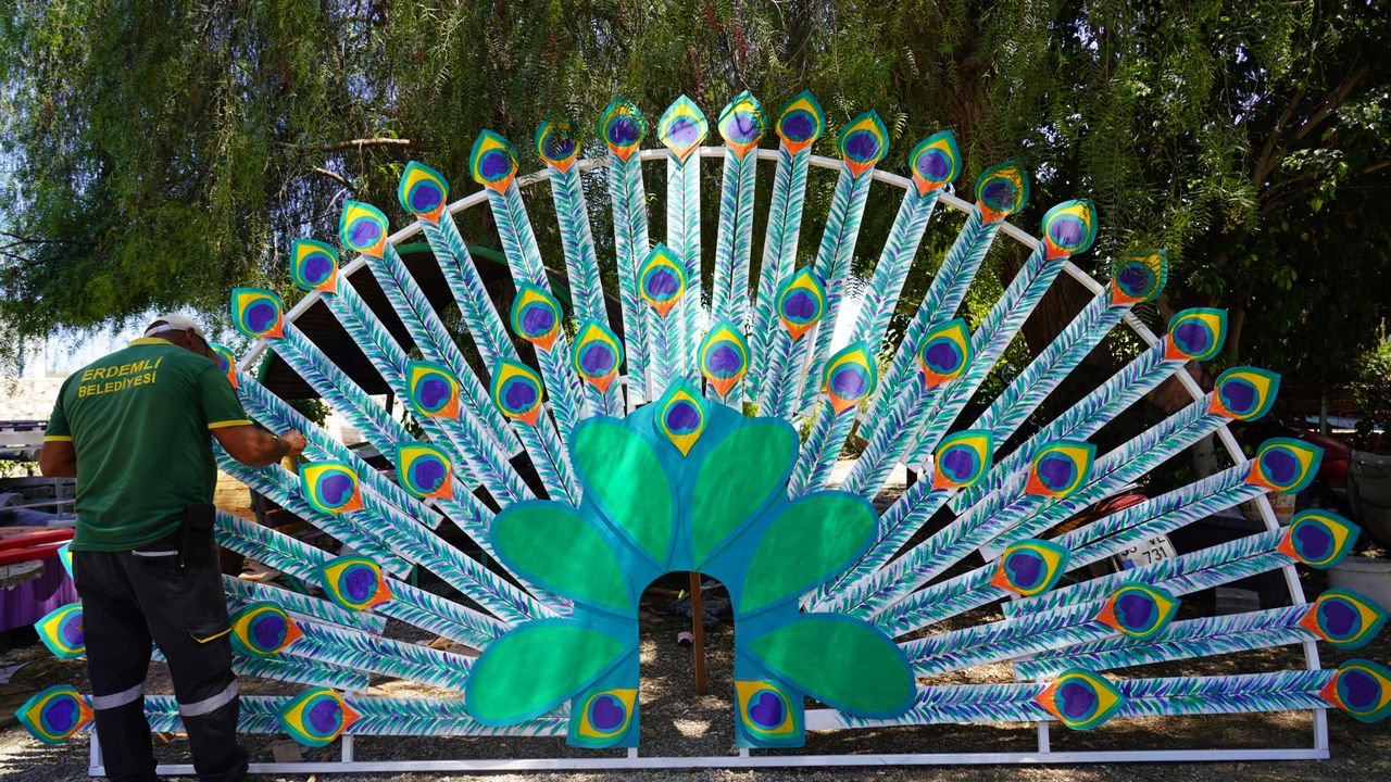 MERSİN (AA) - Erdemli Belediyesi ekiplerince atık malzemeler kullanılarak tasarlanan figürler, park ve bahçelerde sergileniyor.