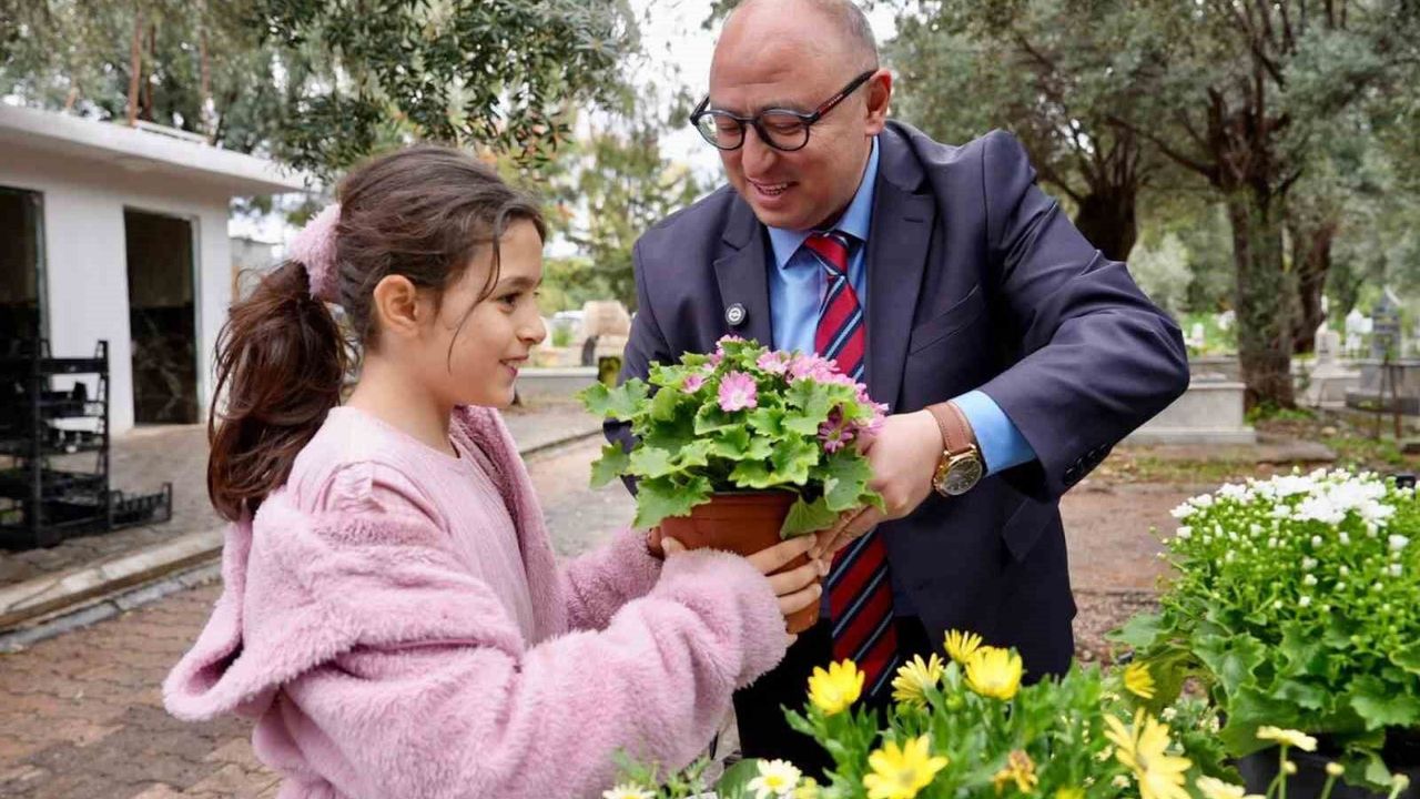 Mersin'in Erdemli Belediyesi, Ramazan Bayramı dolayısıyla mezarlıkları ziyaret eden vatandaşlara kabirlere dikmeleri için ücretsiz çiçek dağıttı.