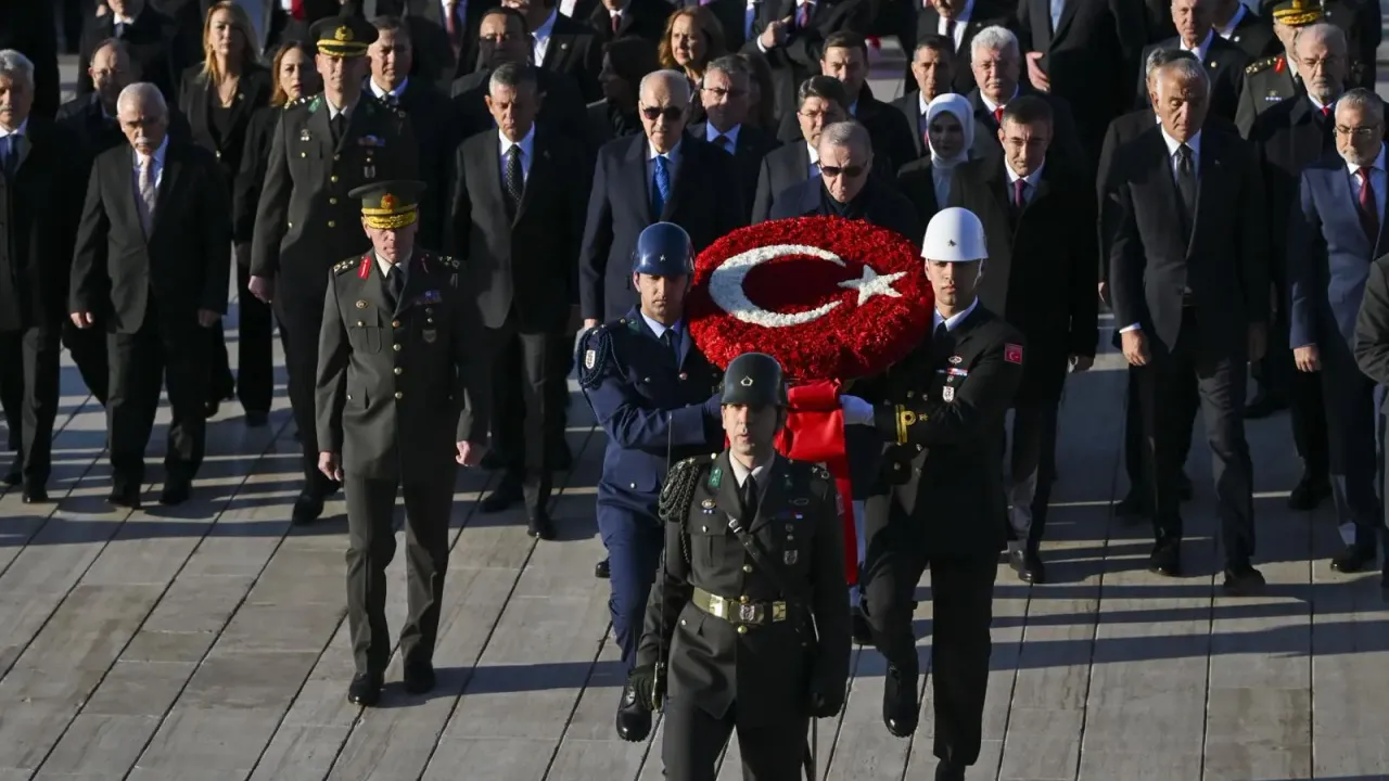 Anıtkabir’deki tören, saat 08.45’te devlet erkânının Aslanlı Yol’dan yürüyüşüyle başladı. Cumhurbaşkanı Recep Tayyip Erdoğan’ın başkanlık ettiği kortejde, TBMM Başkanı Numan Kurtulmuş, Cumhurbaşkanlığı Kabinesi üyeleri, CHP Genel Başkanı Özgür Özel, MHP Genel Başkanı Devlet Bahçeli, İYİ Parti Genel Başkanı Müsavat Dervişoğlu, yüksek yargı organlarının başkanları, TSK komuta kademesi, siyasi parti temsilcileri ve bürokratlar yer aldı.