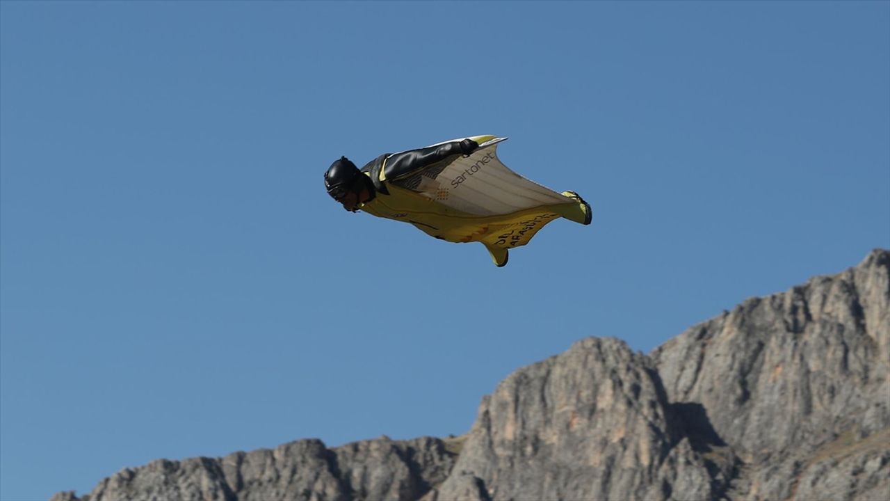 Buradan yarasa kanat atlayışı gerçekleştiren Koçak, kendisini boşluğa bırakarak yaklaşık 1400 metre kadar havada süzüldükten sonra paraşütünü açıp Karasu Nehri'nin serin sularına iniş yaptı.