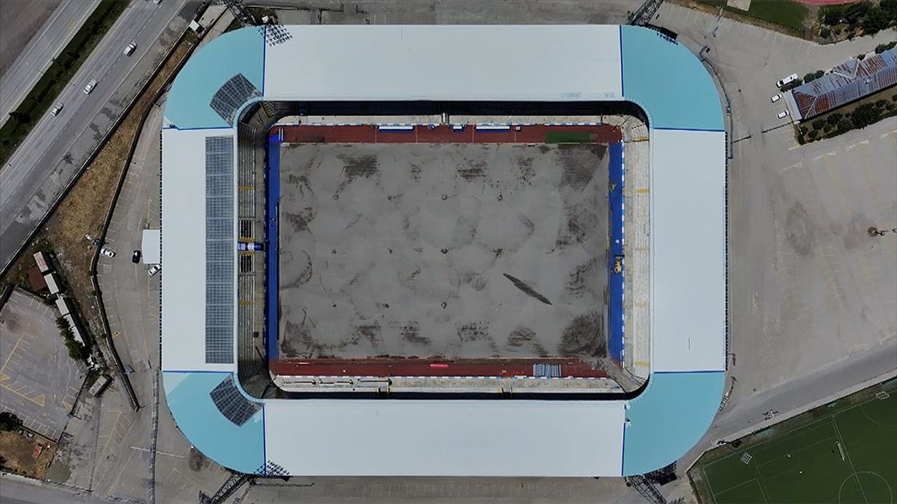 Gençlik ve Spor Bakanlığı ile yapılan görüşmeler üzerine destek aldıklarını belirten Çakmur, "Şu anda 2010 yılından bu tarafa değişmeyen ve büyük bakım onarım geçirmeyen çim zemin sökülerek kaldırıldı." dedi.