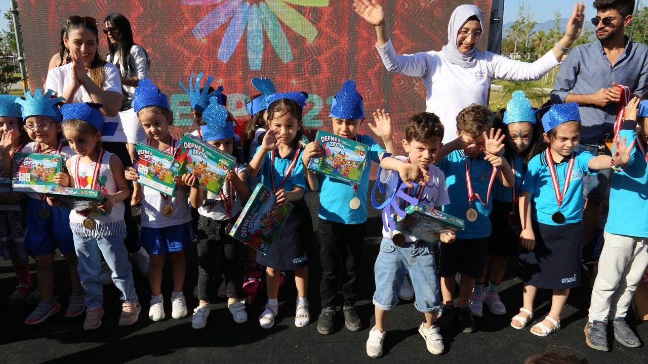 Turnuvanın sonunda madalyalarını alan minik öğrencilere, HBB tarafından EXPO maskotları Defne ve Zeytin’in yer aldığı yapbozlar hediye edildi.