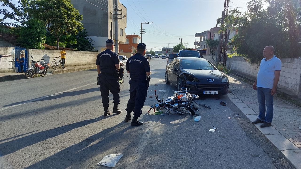 Yeşilköy Mahallesi Atatürk Caddesinde Veli K'nin kullandığı 31 VF 231 plakalı otomobil ile sürücüsünün kimliği henüz öğrenilemeyen 31 AES 301 plakalı motosiklet çarpıştı.