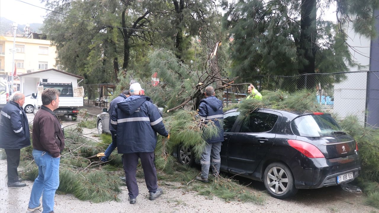 Araçlarda hasar oluştu. Belediye ekipleri, ağaçların kaldırılması için çalışma başlattı. AA