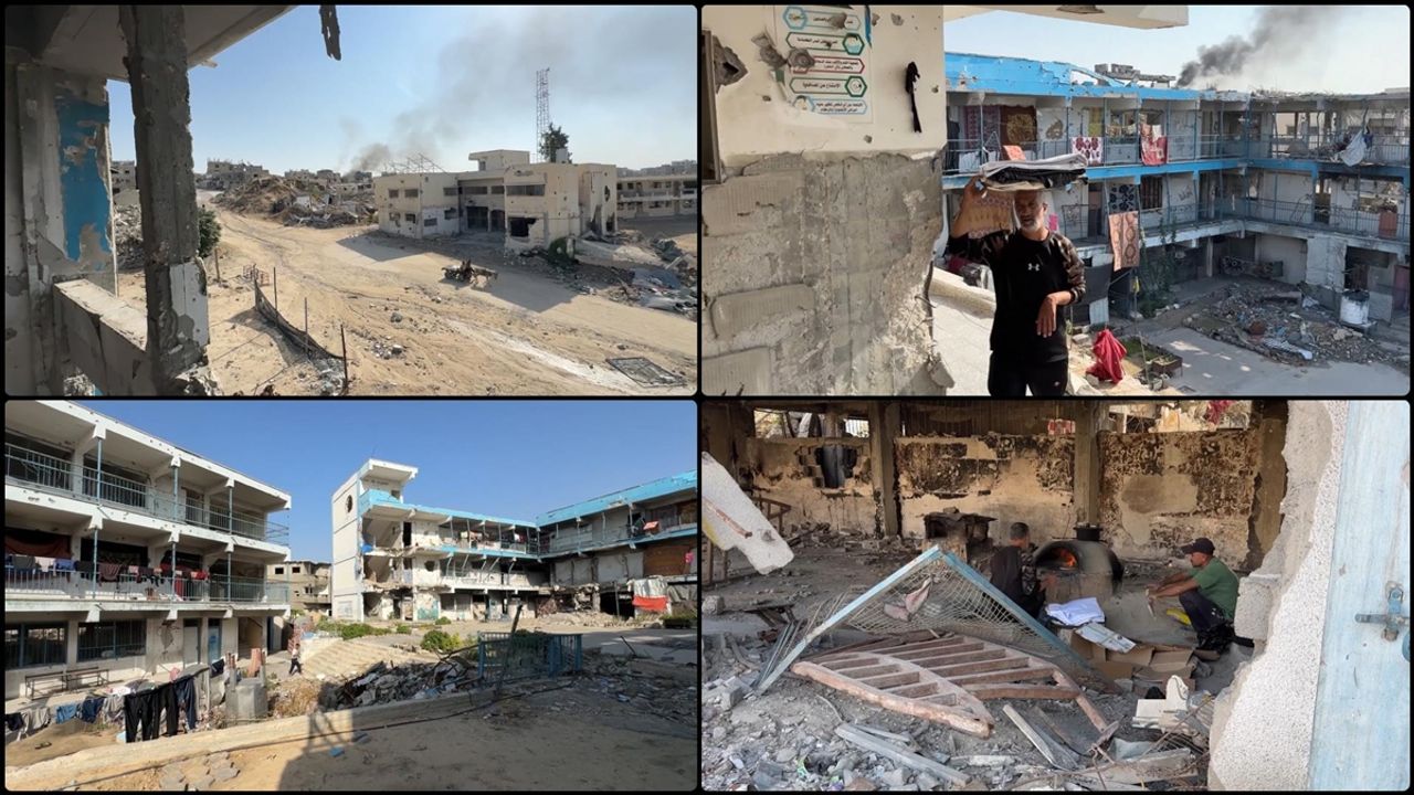 Sarı Hat yakınlarında Birleşmiş Milletler Yakın Doğu'daki Filistinli Mültecilere Yardım ve Bayındırlık Ajansına (UNRWA) ait büyük kısmı viran haldeki okula sığınan aileler, tehlike arz eden bir mekanda bulunmaları sebebiyle kendi kendilerine yetmeye çalışıyor.