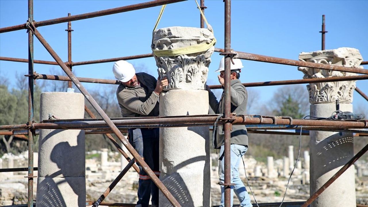 Geleceğe Miras Projesi kapsamında sütunların ayağa kaldırıldığına işaret eden Söğüt, "Burası kent içerisinde çok özel bir yere sahip. Burası 3 hamamdan ve çok iyi bildiğimiz yerlerden de birisi. Onun için Roma dönemine ait hamamla ilgili tüm can alıcı dokunuşları burada gerçekleştirdik." diye konuştu.