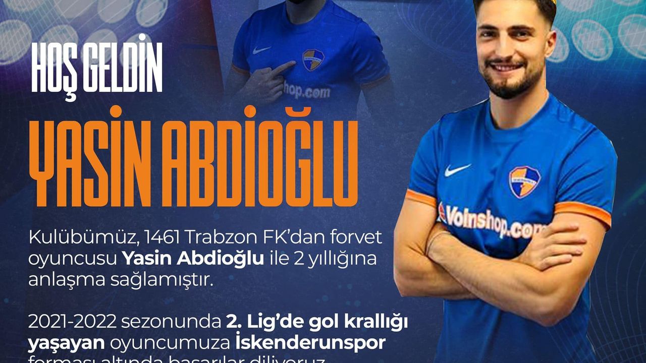 Konuyla ilgili olarak İskenderunspor Kulübünden yapılan açıklamada, “Kulübümüz, 1461 Trabzon FK’dan forvet oyuncusu Yasin Abdioğlu ile 2 yıllığına anlaşma sağlamıştır. 2021-2022 sezonunda 2. Ligde gol krallığı yaşayan oyuncumuza İskenderunspor forması altında başarılar diliyoruz” denildi.