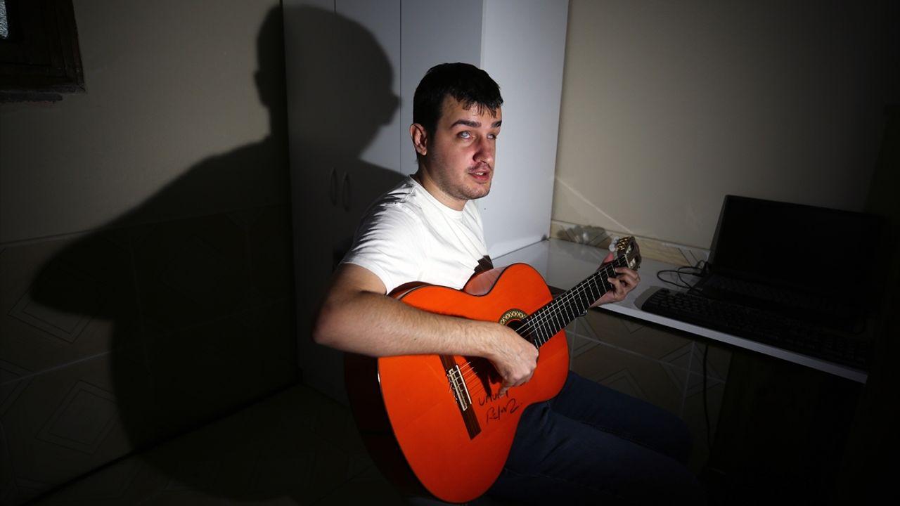 ADANA (AA) - YAKUP SAĞLAM - Adana'da görme engelli 23 yaşındaki Umut Utancak, kendi besteleriyle sahneye çıkmayı hedefliyor.