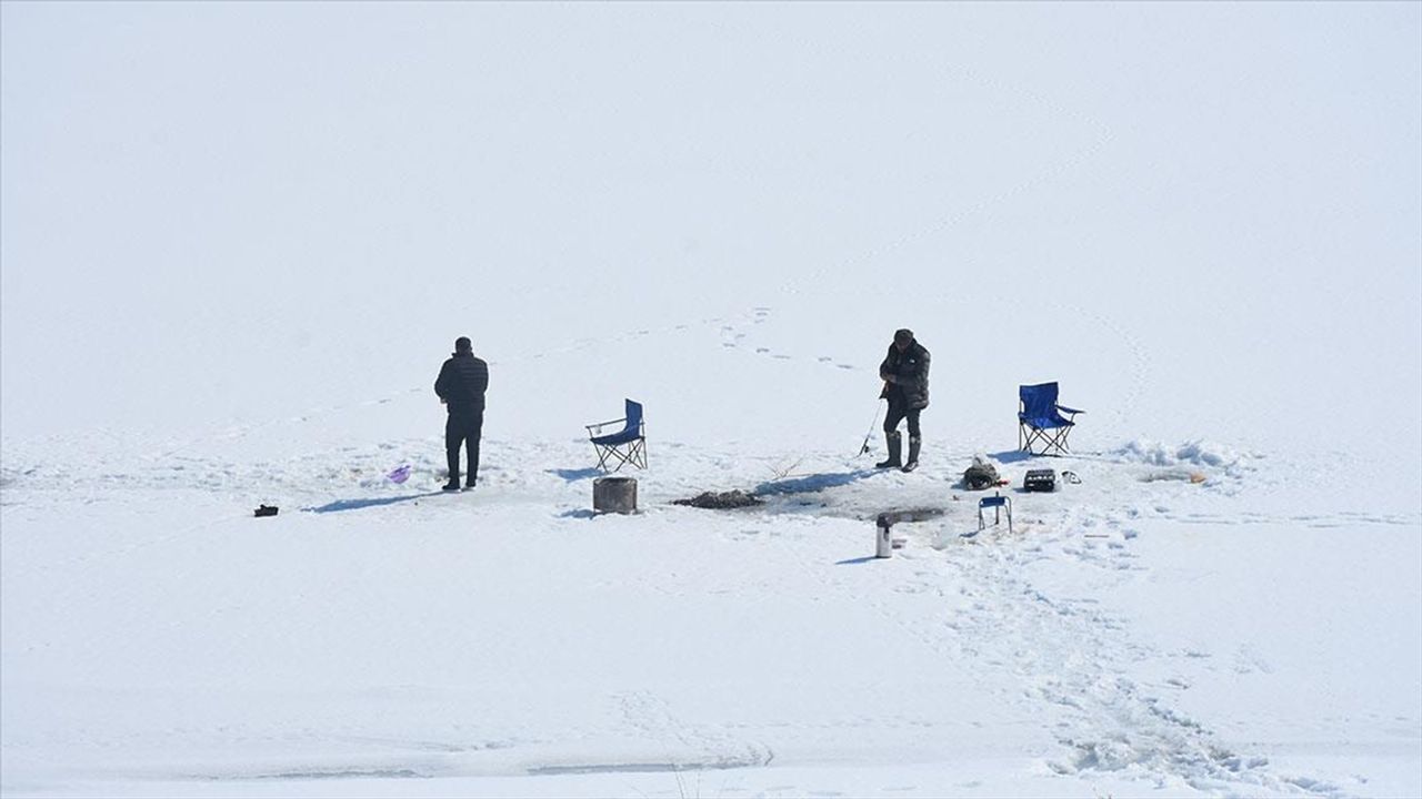 Soner Aslan ise soğuk havaya rağmen balık tutmaktan keyif aldıklarını ifade ederek, "Buzları kırdık, oltalarımıza yemlerimizi taktık. Büyüklerimizden gördüğümüz bu şekildeki avcılığı devam ettiriyoruz." dedi.