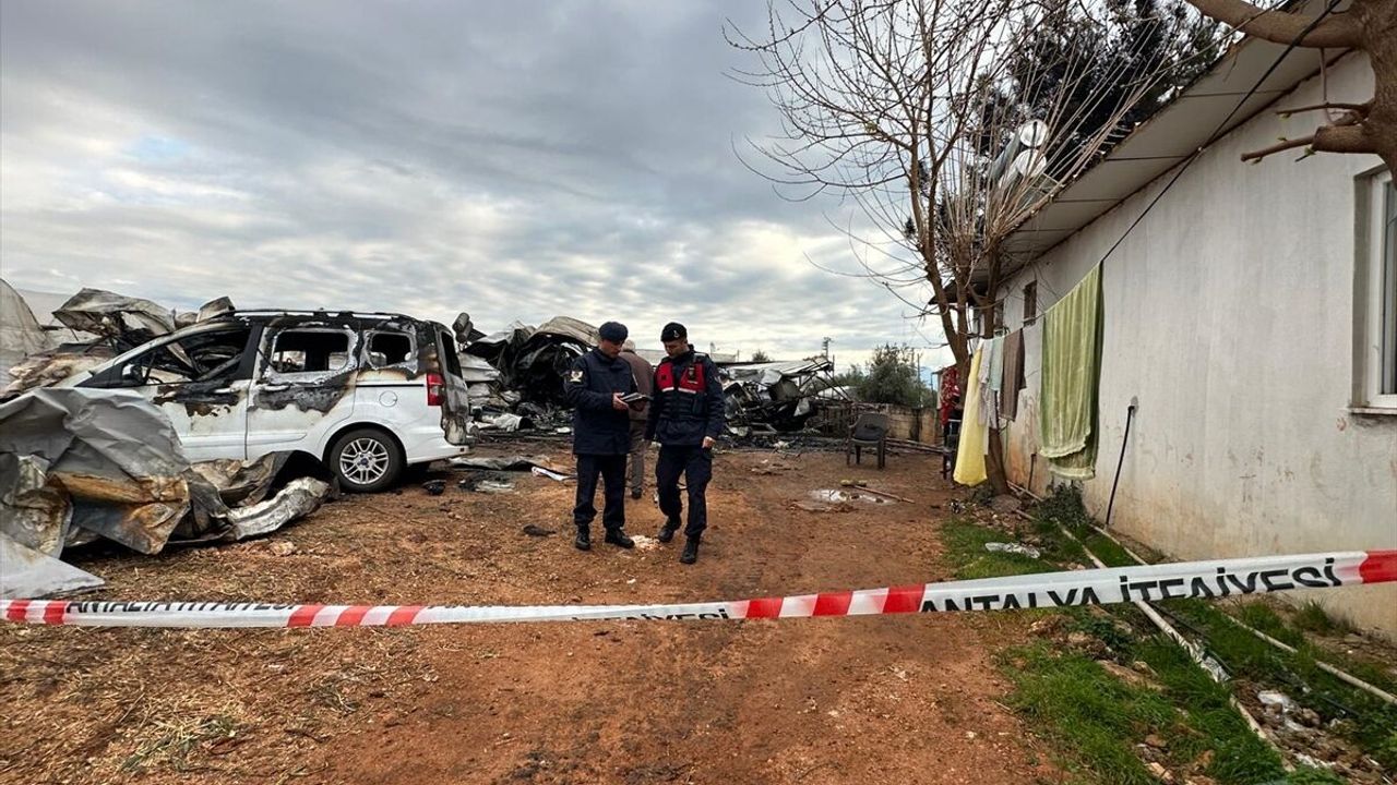 Gaziler Mahallesi'nde yabancı uyruklu sera işçilerinin kaldığı konteynerde henüz belirlenemeyen nedenle yangın çıktı.
