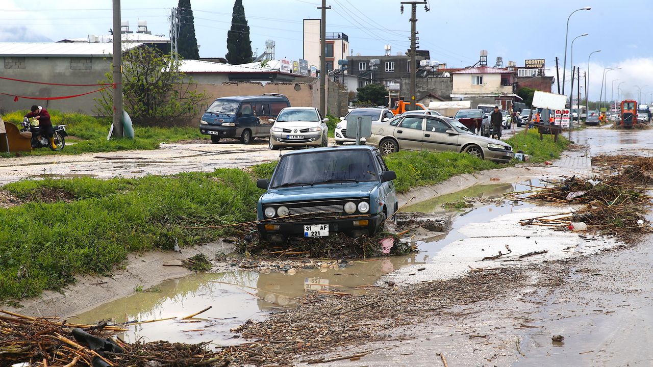 HATAY (AA) - Hatay'ın merkez Antakya ilçesinde sağanak nedeniyle cadde ve sokaklarda su birikintileri oluştu, bazı araçlar yollarda mahsur kaldı.
