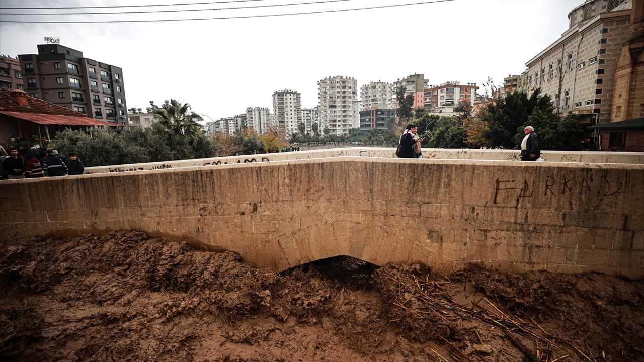 Devlet Su İşleri (DSİ) ve Mezitli Belediyesi ekipleri, derenin taştığı bulvarın çevresinde tahliye ve temizlik çalışması başlattı.