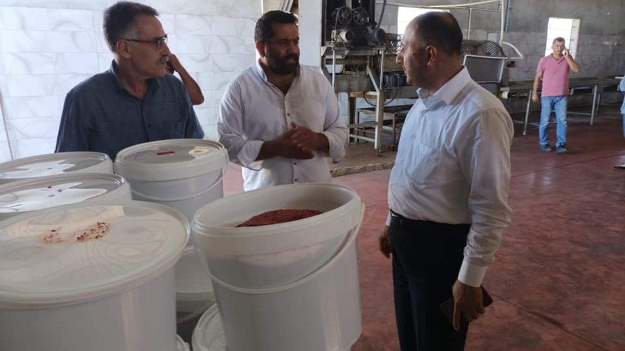 Antakya İlçesi Bohşin Mahallesi’nde üretime yeni geçmiş olan Musaoğulları Salça Fabrikası ve Mahir Salça Fabrikası’na Hatay Tarım ve Orman İl Müdürü Ergün Çolakoğlu denetim gerçekleştirildi.