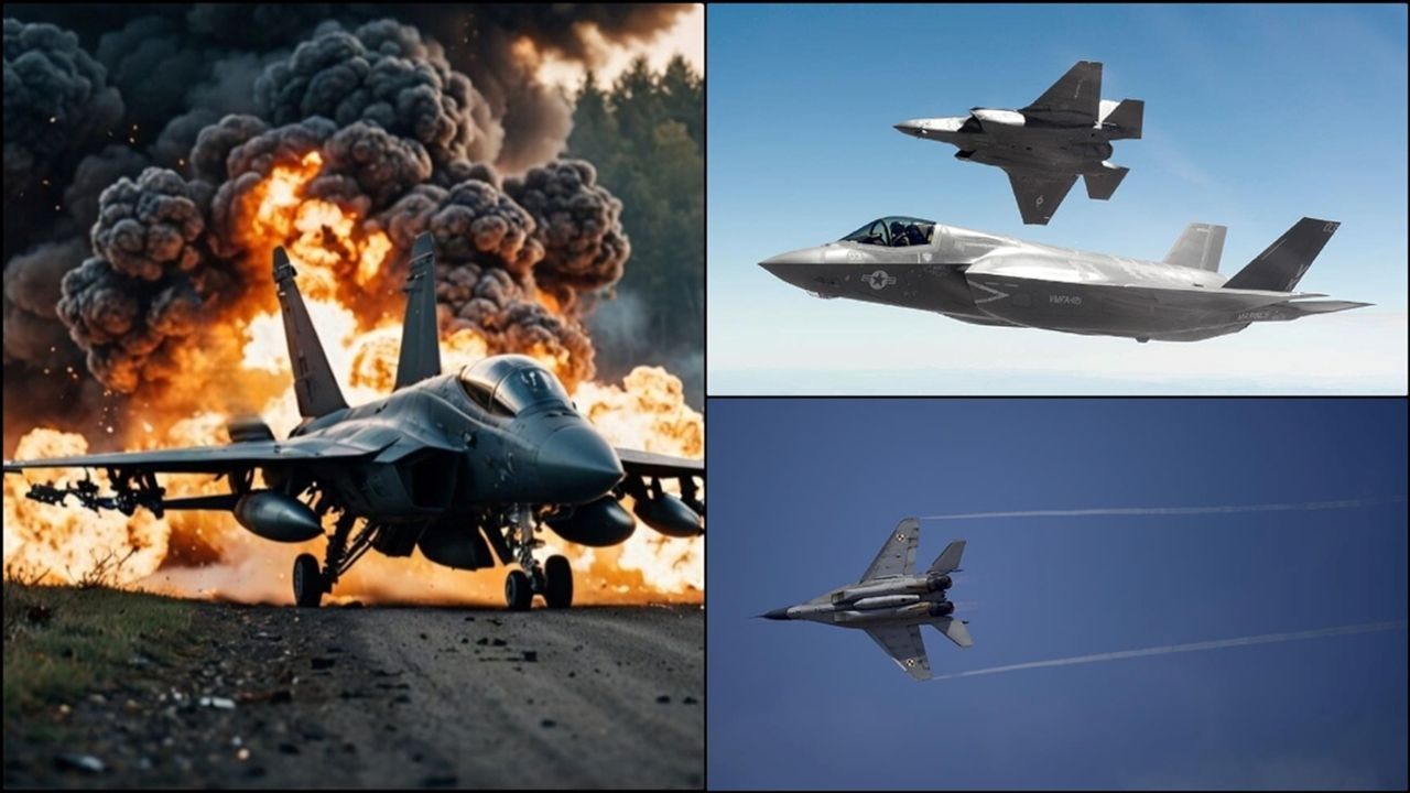 Sosyal medyada paylaşılan görüntülerde, F-35 savaş uçağının havadan süzülerek hızla yere çakıldığı ve infilak ettiği görülüyor.