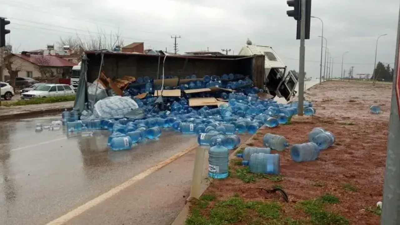 Edinilen bilgilere göre kaza, Hassa ilçesine bağlı Ardıçlı Mahallesi’nde yaşandı. Damacana yüklü kamyon, sürücüsünün direksiyon hakimiyetini kaybetmesi sonucu önce direğe çarptı, ardından yan yattı. Kazanın etkisiyle araç kasasında bulunan çok sayıda damacana karayoluna savruldu.