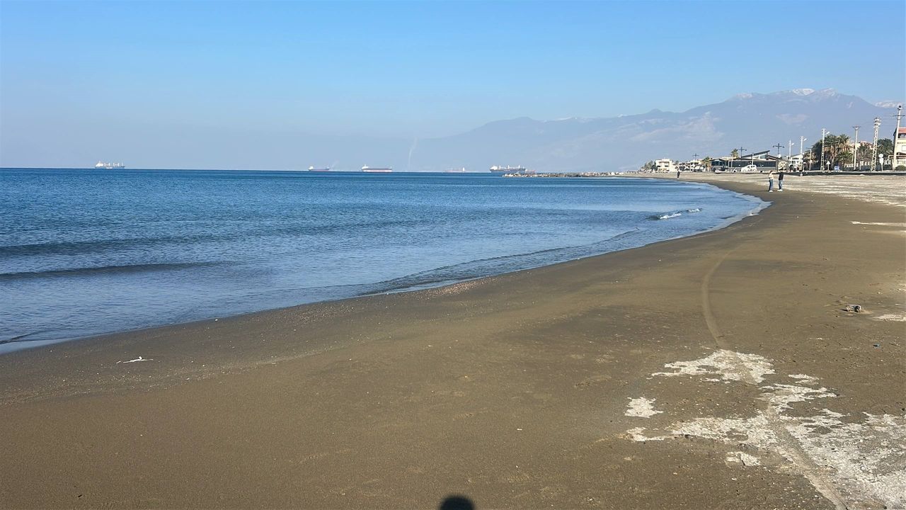 Akdeniz kıyısındaki Karaağaç Mahallesi sahilinde gözle görülür seviyeye ulaşan çekilme, sabah saatlerinde fark edilirken, bölge havadan da görüntülendi.
