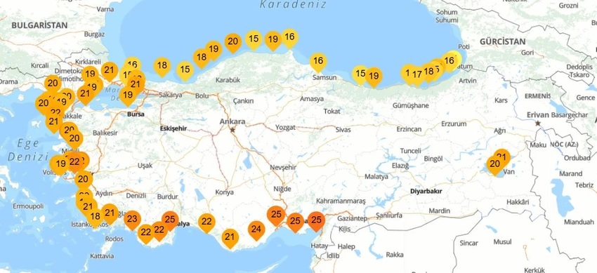 Yazın gelmesine rağmen Marmara bölgesi deniz suyu sıcaklıklarında 15-16°C, Ege bölgesindeyse 20-22°C seviyeleri ölçülüyor. Bu değerler, Akdeniz bölgesinin daha hızlı ısınacağını gösteriyor.
