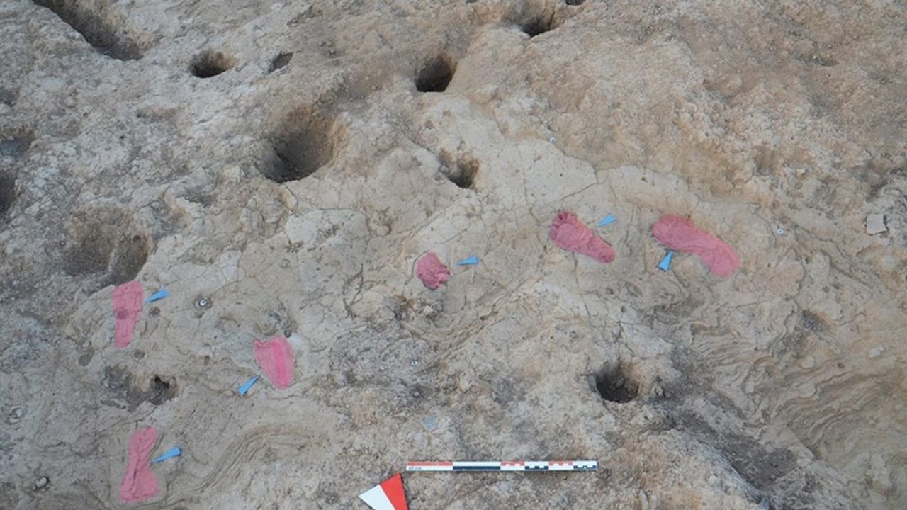 Bakanlıktan yapılan açıklamaya göre, 21 Ağustos 2025'te 8564 açmasında yapılan çalışmalarda gün ışığına çıkarılan ayak izlerinin, yoğun yağmura veya suya maruz kalmış çamurlu dolgu tabakasında yürüyen bireylere ait olduğu belirlendi.