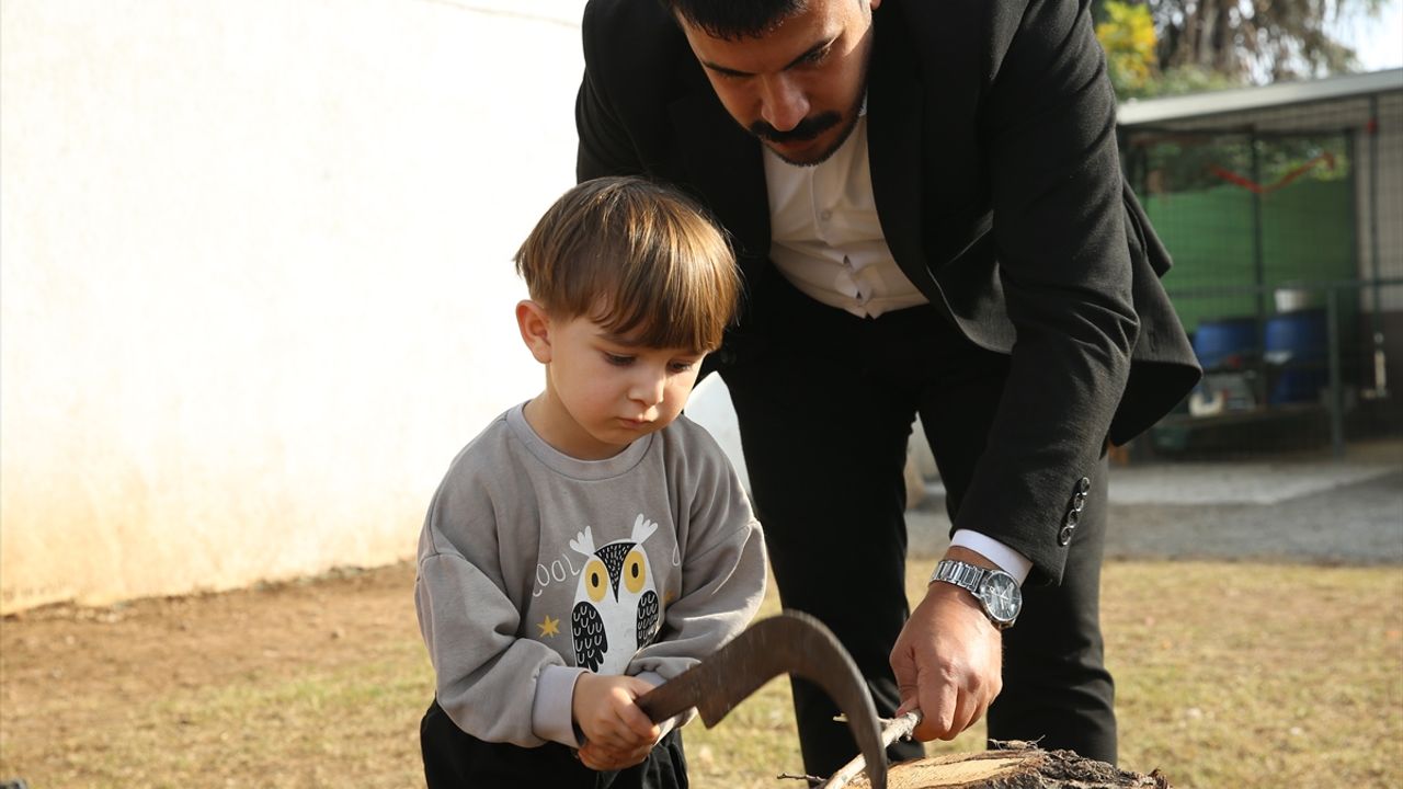 HATAY (AA) - MEHMET BAYRAK - Hatay'da doğayla iç içe verilen uygulamalı eğitimlerle geleceğe hazırlanan anaokulu öğrencileri, besledikleri tavukların yumurtalarını topluyor, hobi bahçesinde meyve ve sebze hasadı yapıyor.