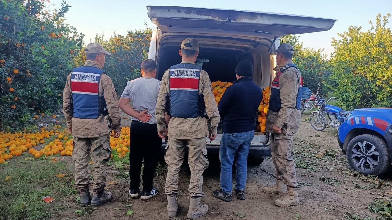 Çaldıkları portakalları panelvana yüklerken yakalanan R.C, A.C, Y.C, S.C. ve M.C. gözaltına alındı.