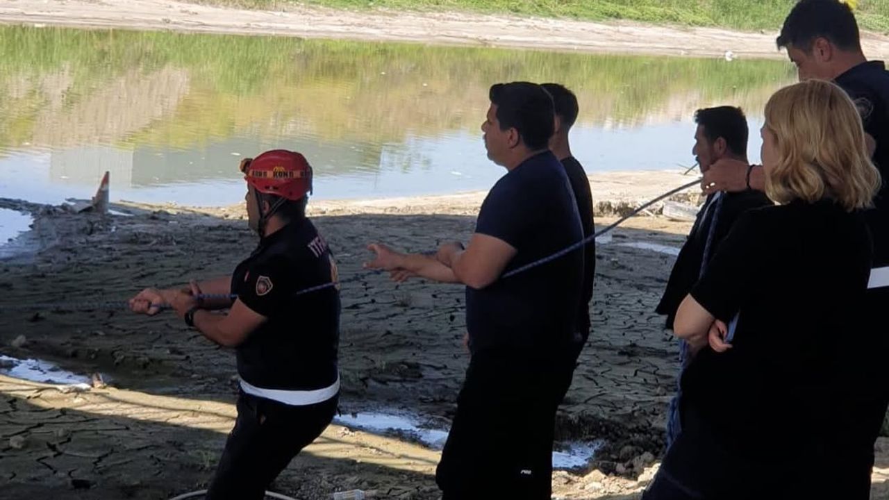 Ekipler, dizlerine kadar çamura saplanan A.Ş'yi halat yardımıyla bulunduğu yerden çıkardı.