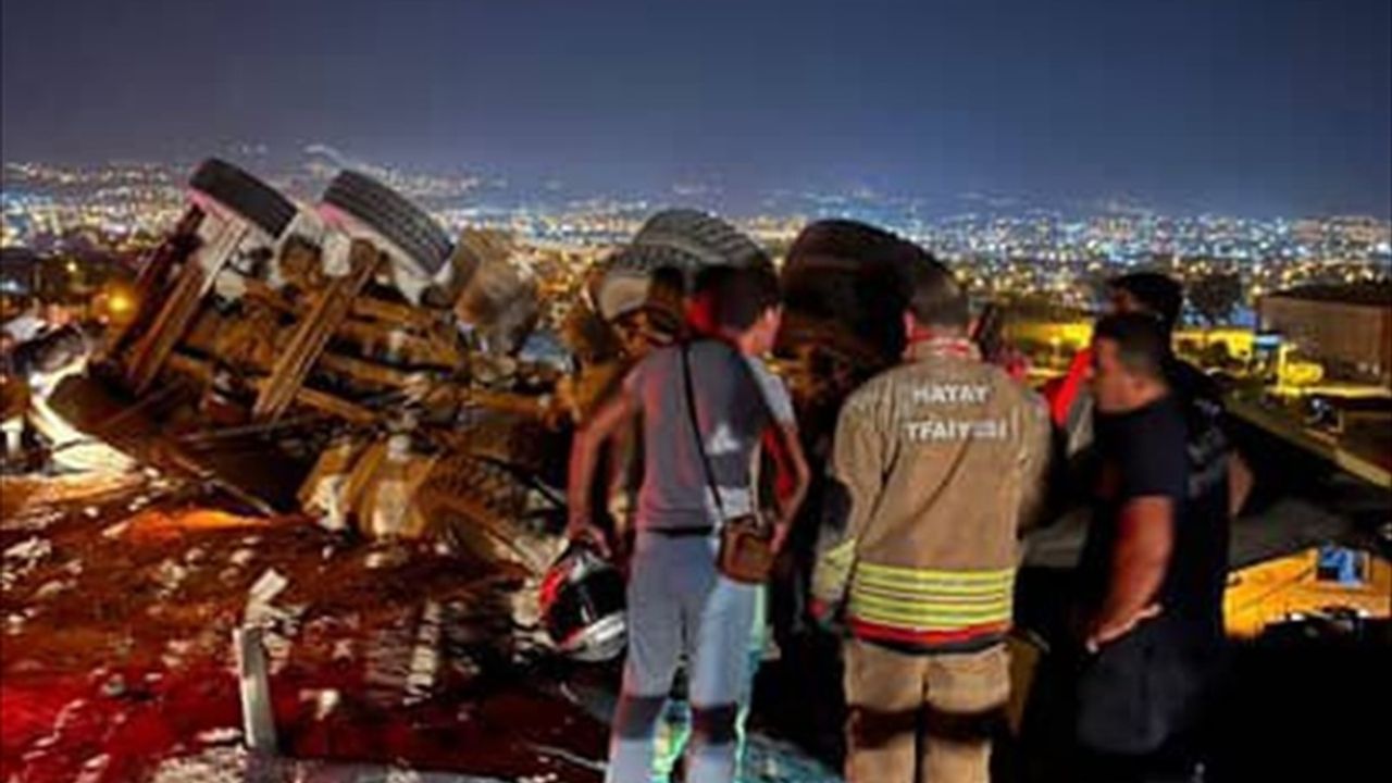 Yılmaz Kanal idaresindeki 06 FU 7742 hafriyat kamyonu, Antakya-Altınözü kara yolunun Narlıca mevkisinde devrildi.