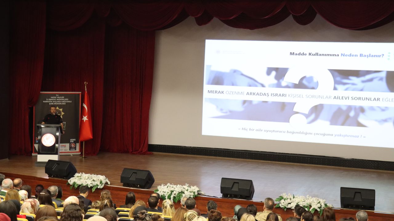 Vali Mustafa Masatlı, Hatay Mustafa Kemal Üniversitesi (HMKÜ) Atatürk Konferans Salonu'nda gerçekleşen programda, uyuşturucuyla mücadelenin toplumun tamamını merkeze alan geniş kapsamlı bir mesele olduğunu söyledi.