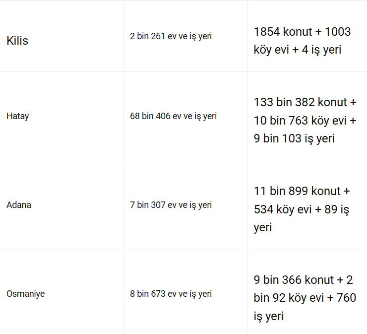 Depremden etkilenen diğer illerde de teslimatlar hızla sürüyor. İşte bazı önemli veriler: