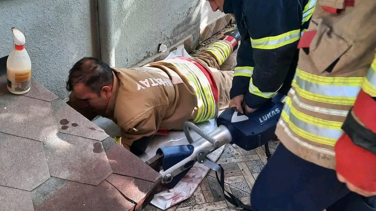 Hatay'ın Defne ilçesinde binanın havalandırma boşluğuna düşen köpek, itfaiye ekipleri tarafından kurtarıldı.