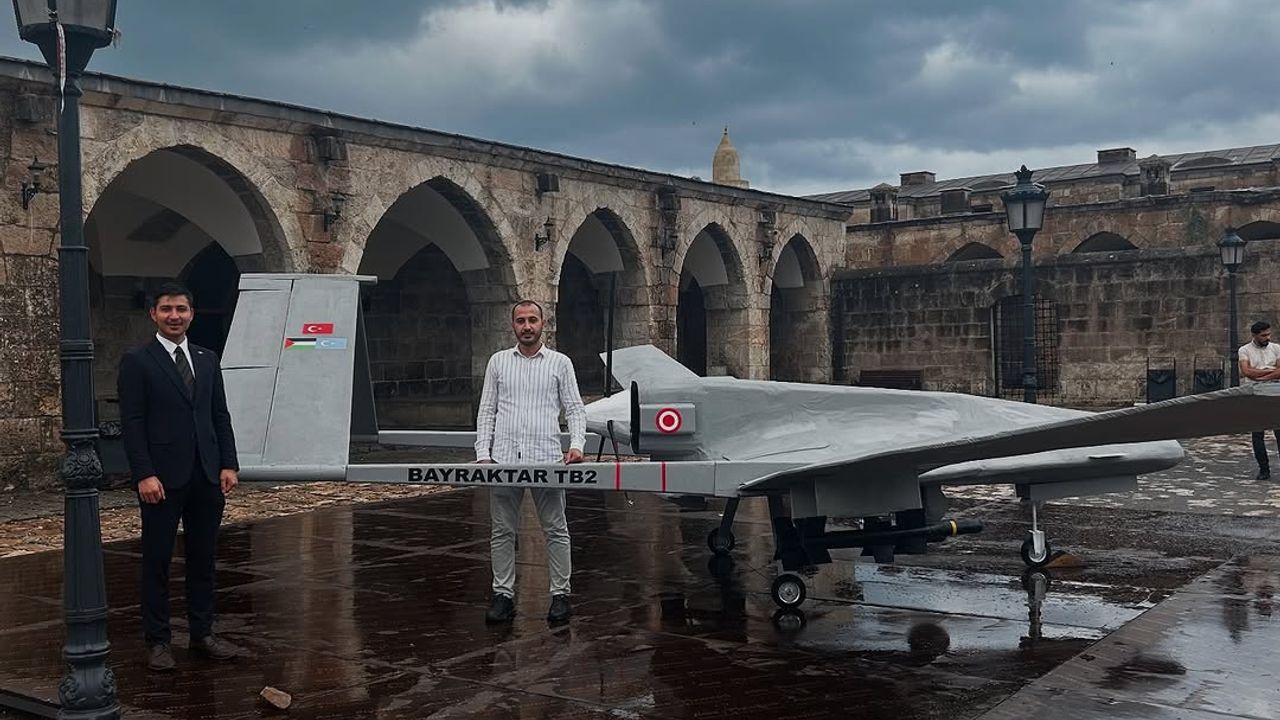SİHA maketi, 30 Ağustos Zafer Bayramı etkinlikleri kapsamında Payas Sokullu Mehmet Paşa Külliyesi'nde sergilenmeye başlandı.
