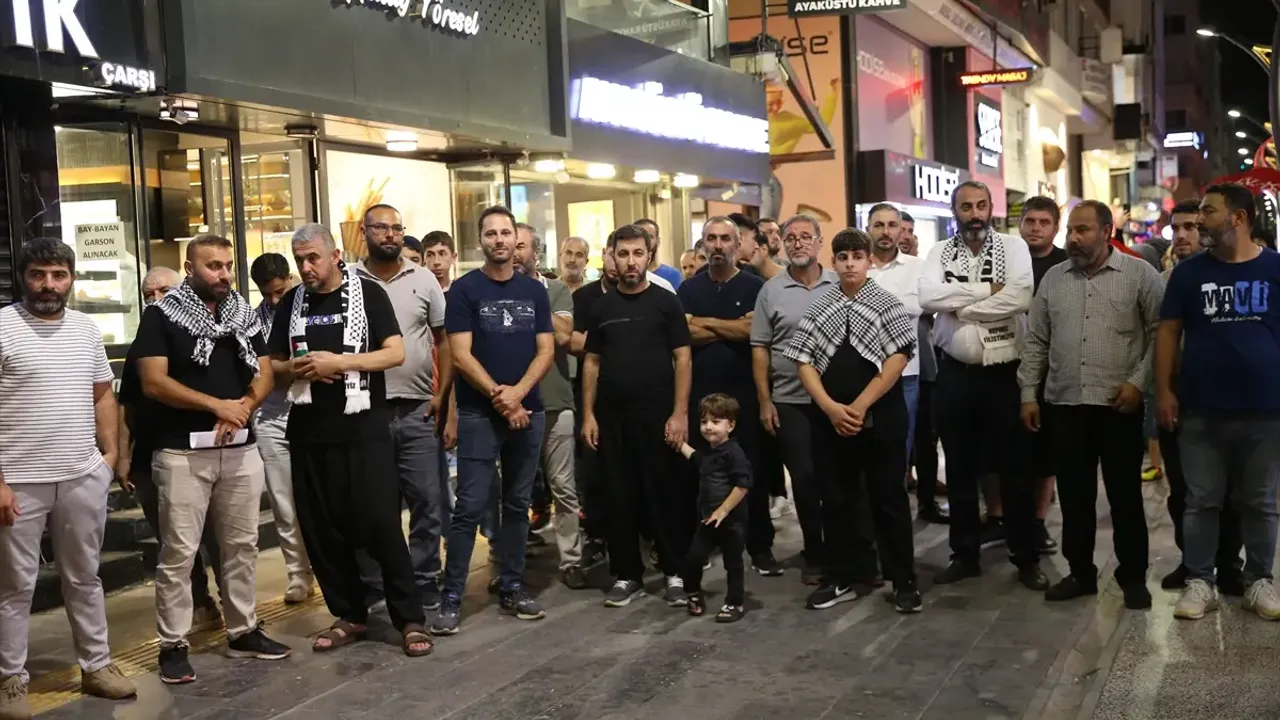 İskenderun ilçesi Savaş Mahallesi'nde düzenlenen protesto gösterisinde, Peygamber Sevdalıları Vakfı öncülüğünde toplanan kalabalık, İsrail karşıtı sloganlar atarak saldırıyı kınadı.