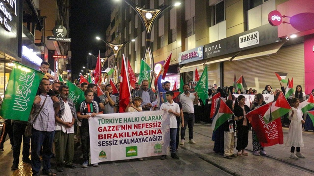 Peygamber Sevdalıları Vakfı öncülüğünde Savaş Mahallesi'nde bir araya gelen katılımcılar, İsrail aleyhine slogan attı.
